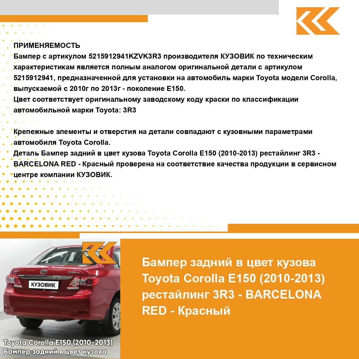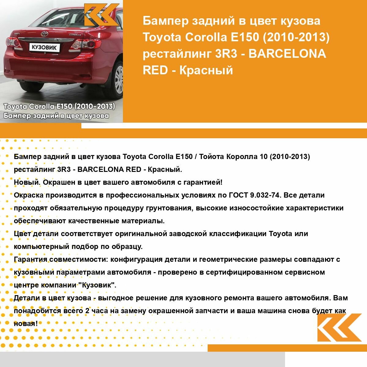 Ниже Вы можете прочитать отзывы на Бампер задний в цвет кузова для Тойота Королла Е150 Toyota Corolla E150 (2010-2013) рестайлинг 3R3 - BARCELONA RED - Красный, ознакомится с подробными характеристиками, посмотреть интересные обзоры и фотографии на Бампер задний в цвет кузова для Тойота Королла Е150 Toyota Corolla E150 (2010-2013) рестайлинг 3R3 - BARCELONA RED - Красный.
