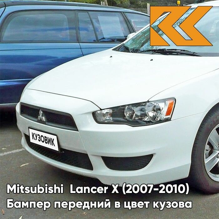 Бампер передний в цвет Mitsubishi Lancer Х (2007-2010) W37 - переднOST WHITE - Белый