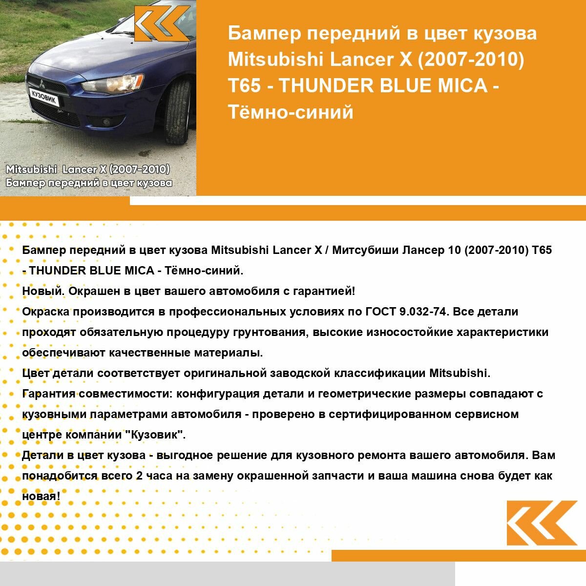 СохранитьБампер передний в цвет кузова для Митсубиси Лансер 10 Mitsubishi Lancer 10 (2007-2010) T65 - Темно-синий интересное: