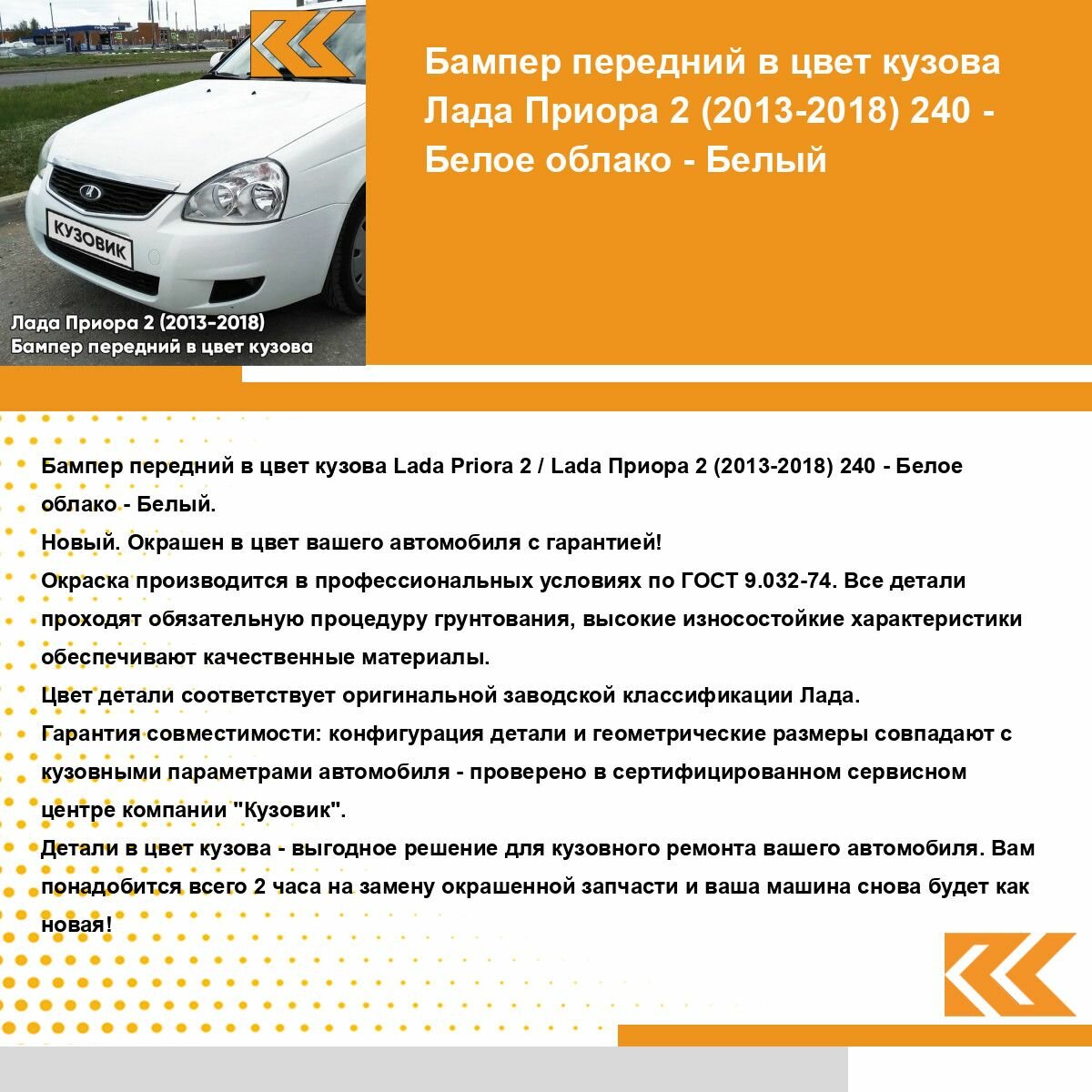 Ниже Вы можете прочитать отзывы на Бампер передний в цвет кузова для Лада Приора 2 (2013-2018) 240 - Белое облако - Белый, ознакомится с подробными характеристиками, посмотреть интересные обзоры и фотографии на Бампер передний в цвет кузова для Лада Приора 2 (2013-2018) 240 - Белое облако - Белый.