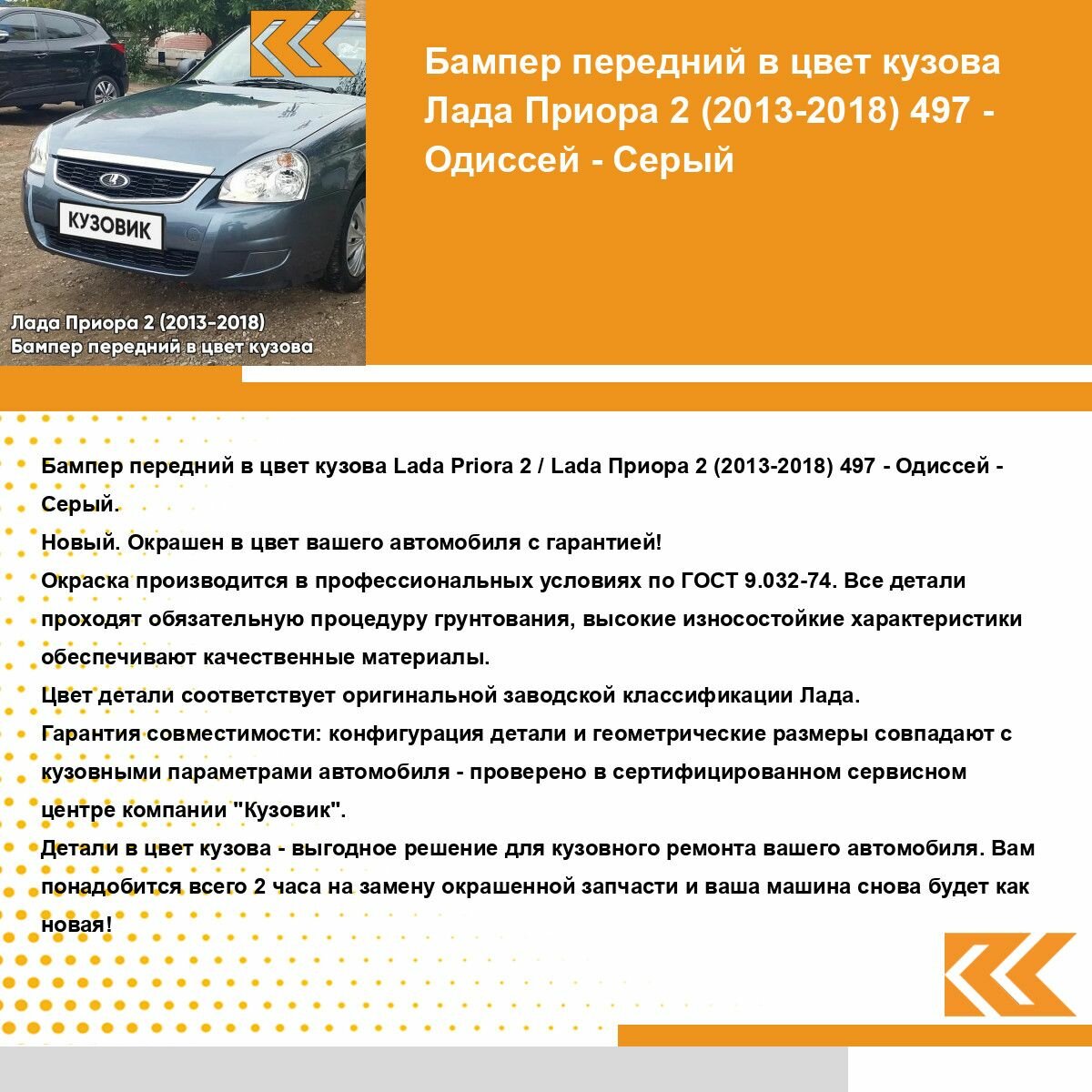 | Подробная комплектация | Бампер передний в цвет кузова для Лада Приора |