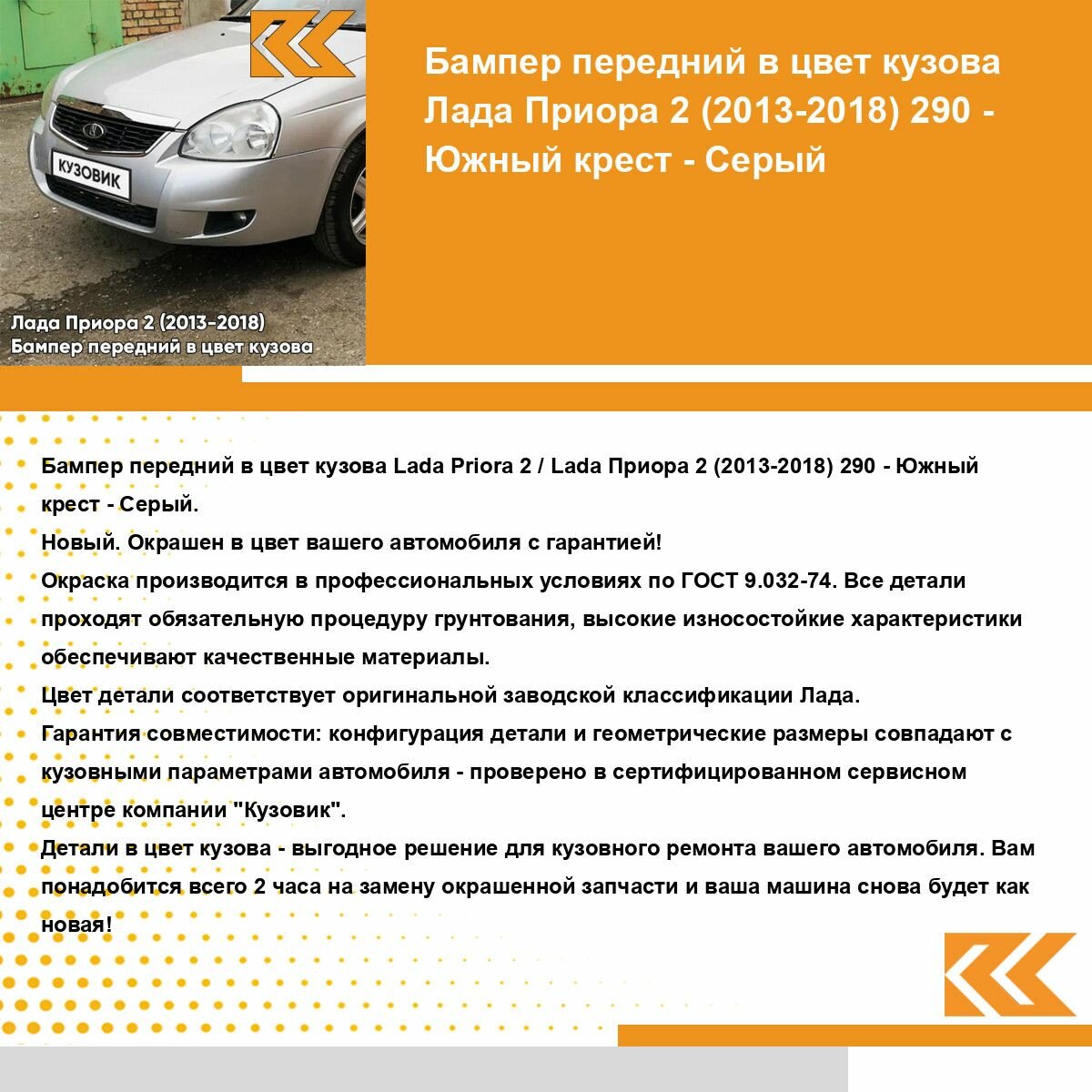 Ниже Вы можете прочитать отзывы на Бампер передний в цвет кузова для Лада Приора 2 (2013-2018) 290 - Южный крест - Серый, ознакомится с подробными характеристиками, посмотреть интересные обзоры и фотографии на Бампер передний в цвет кузова для Лада Приора 2 (2013-2018) 290 - Южный крест - Серый.