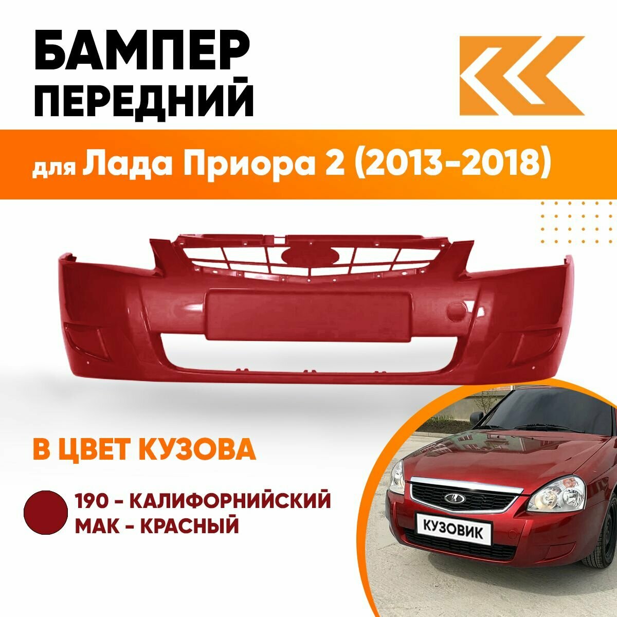 Бампер передний в цвет Лада Приора 2 (2013-2018) 190 - Калифорнийский мак - Красный