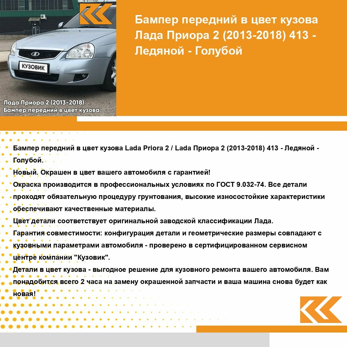 Бампер передний в цвет Лада Приора 2 (2013-2018) 413 - Ледяной - Голубой