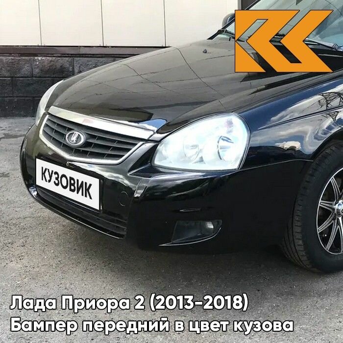 Бампер передний в цвет Лада Приора 2 (2013-2018) 672 - Черная Пантера - Черный