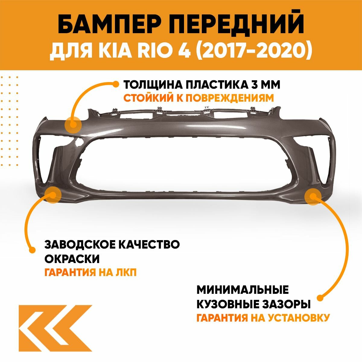 | Подробная комплектация | Бампер передний в цвет кузова Киа Рио 4 без решеток |