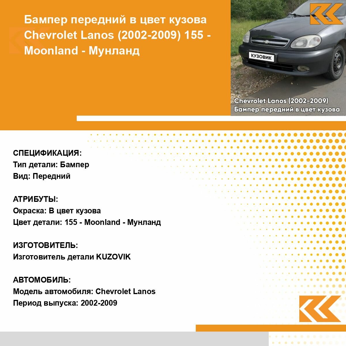 | Подробная комплектация | Бампер передний в цвет кузова Chevrolet Lanos |