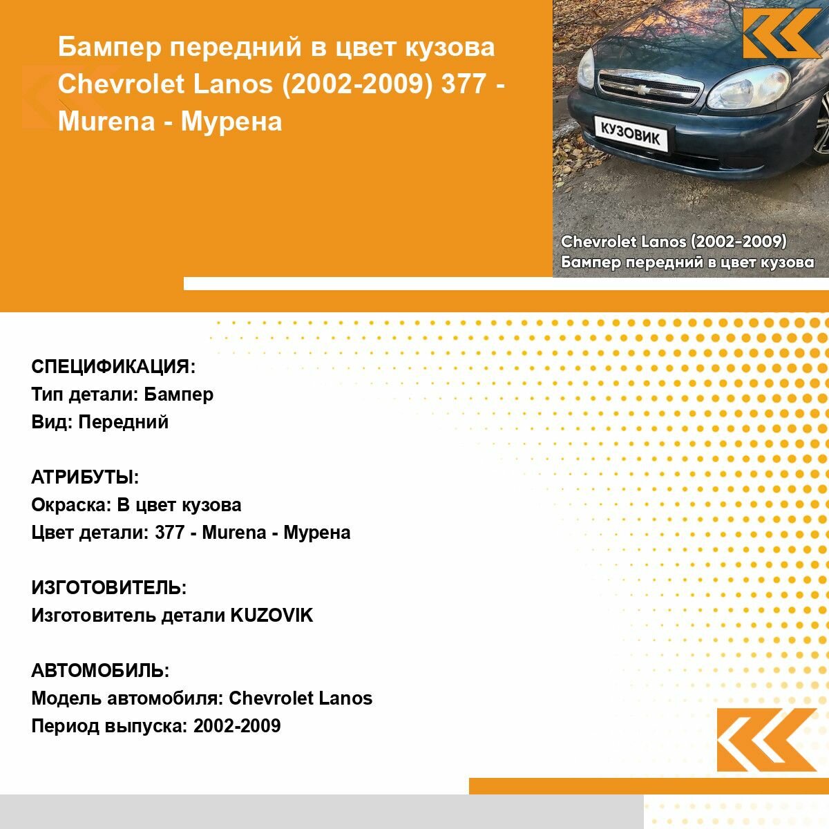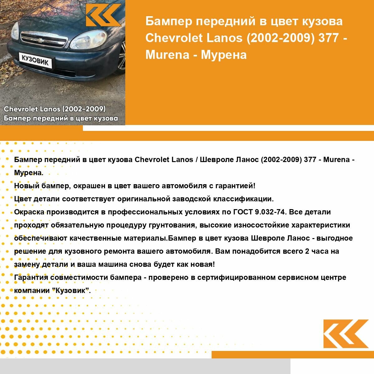 | Подробная комплектация | Бампер передний в цвет кузова Chevrolet Lanos |