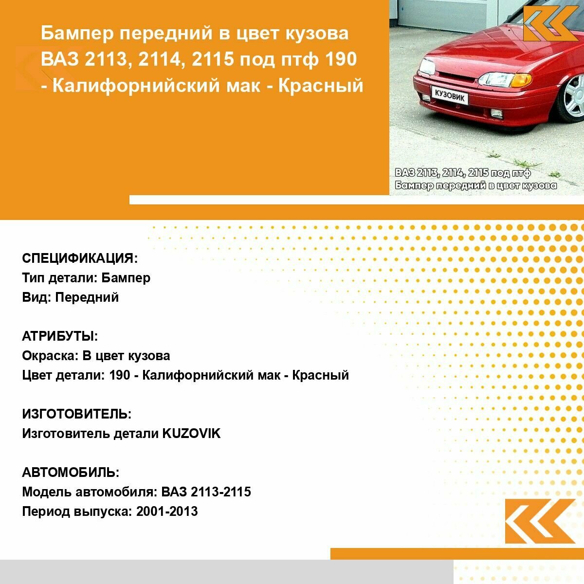 Купить Бампер передний в цвет кузова ВАЗ 2114 2115 2113 под птф 190 - Калифорнийский мак - Красный