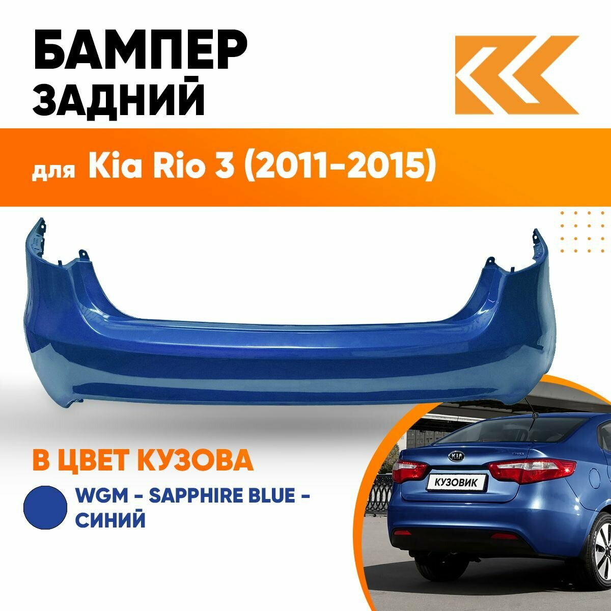 Купить Бампер задний в цвет кузова для Киа Рио 3 Kia Rio 3 (2011-2015) седан WGM - SAPPHIRE BLUE - Синий