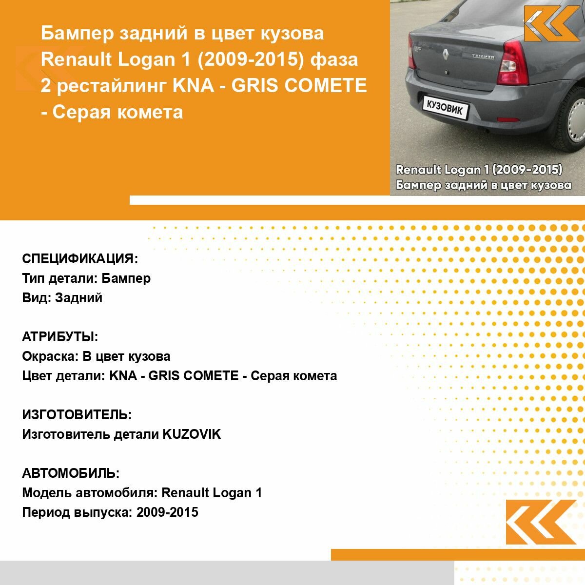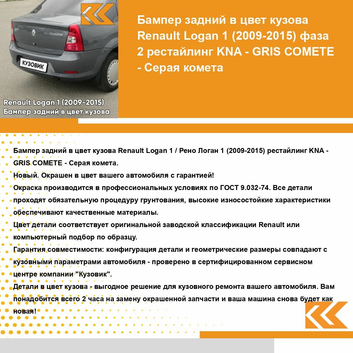 СохранитьБампер задний в цвет кузова для Рено Логан 1 Renault Logan 1 (2009-2015) фаза 2 рестайлинг KNA - GRIS COMETE - Серая комета интересное: