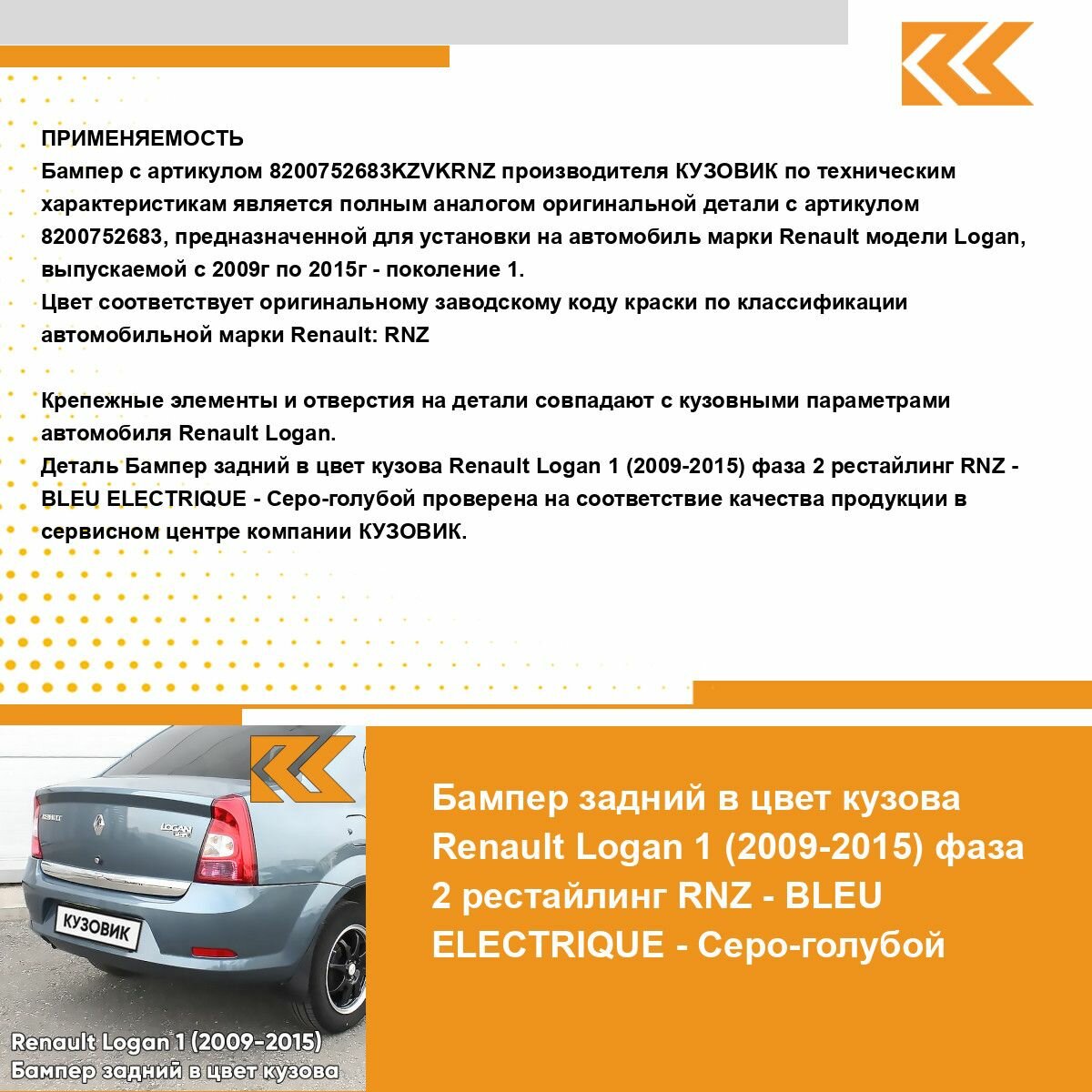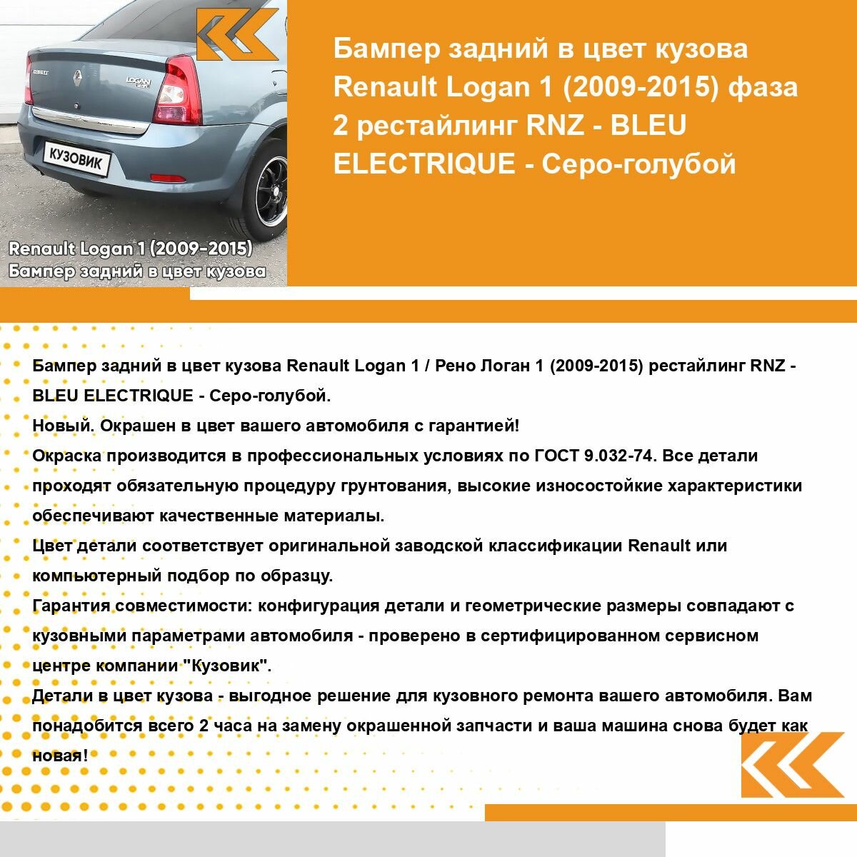 СохранитьБампер задний в цвет кузова для Рено Логан 1 Renault Logan 1 (2009-2015) фаза 2 рестайлинг RNZ - BLEU ELECTRIQUE - Серо-голубой интересное:
