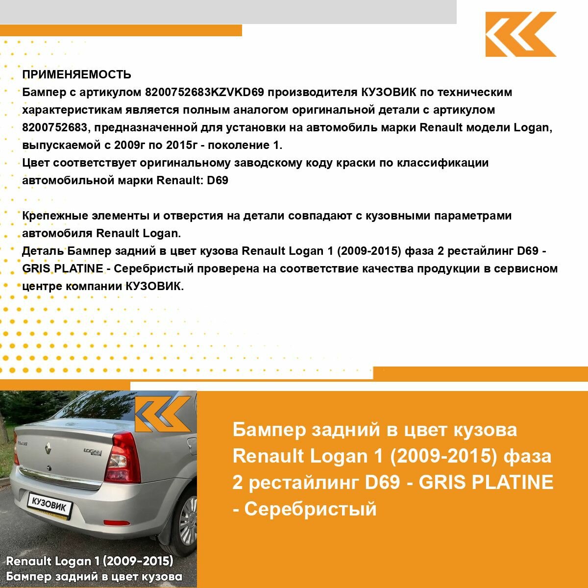 СохранитьБампер задний в цвет кузова для Рено Логан 1 Renault Logan 1 (2009-2015) фаза 2 рестайлинг D69 - GRIS PLATINE - Серебристый интересное: