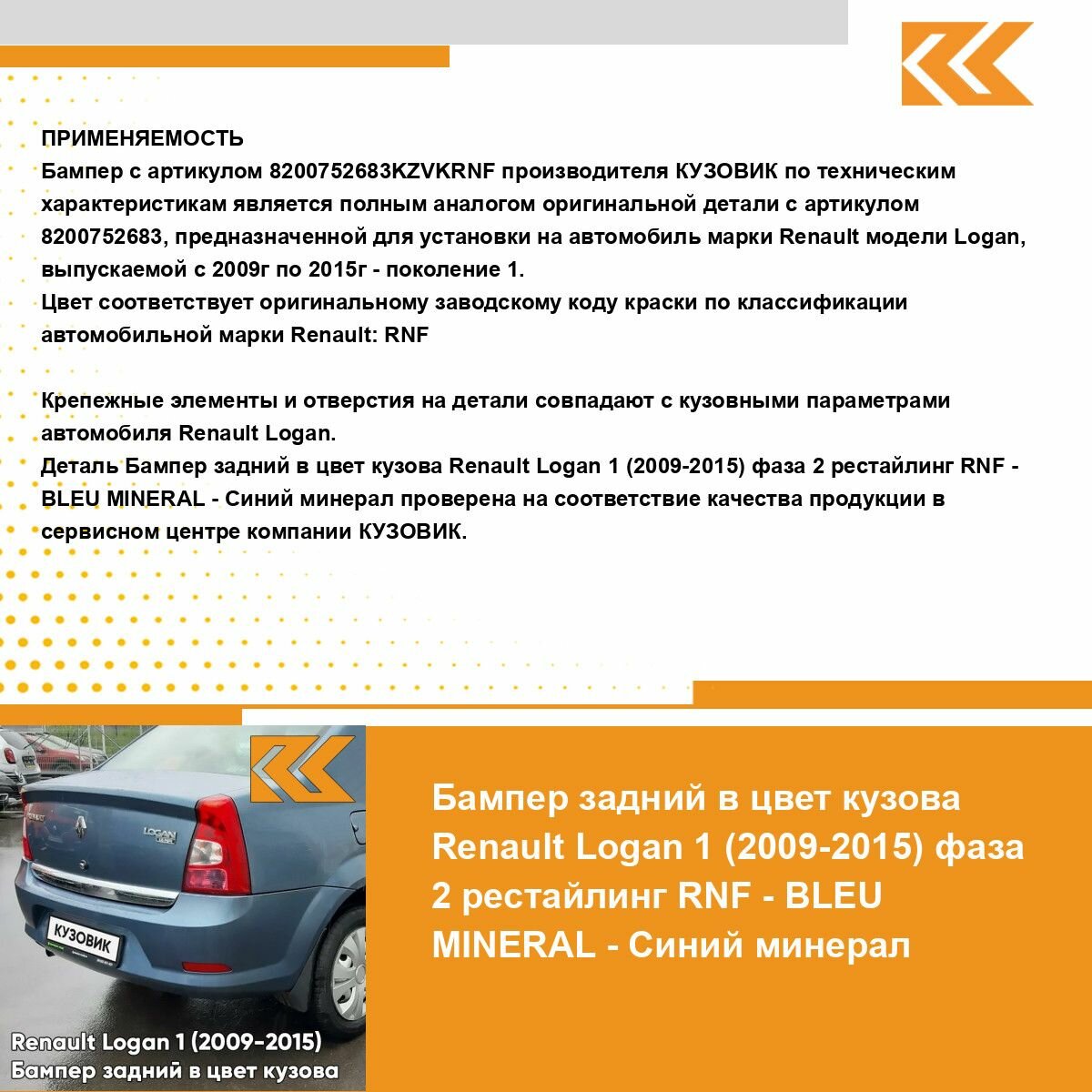 СохранитьБампер задний в цвет кузова для Рено Логан 1 Renault Logan 1 (2009-2015) фаза 2 рестайлинг RNF - BLEU MINERAL - Синий минерал интересное: