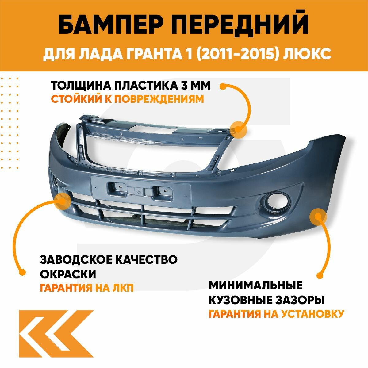 Бампер передний в цвет Лада Гранта 1 (2011-2015) люкс 607 - серое олово - Серый