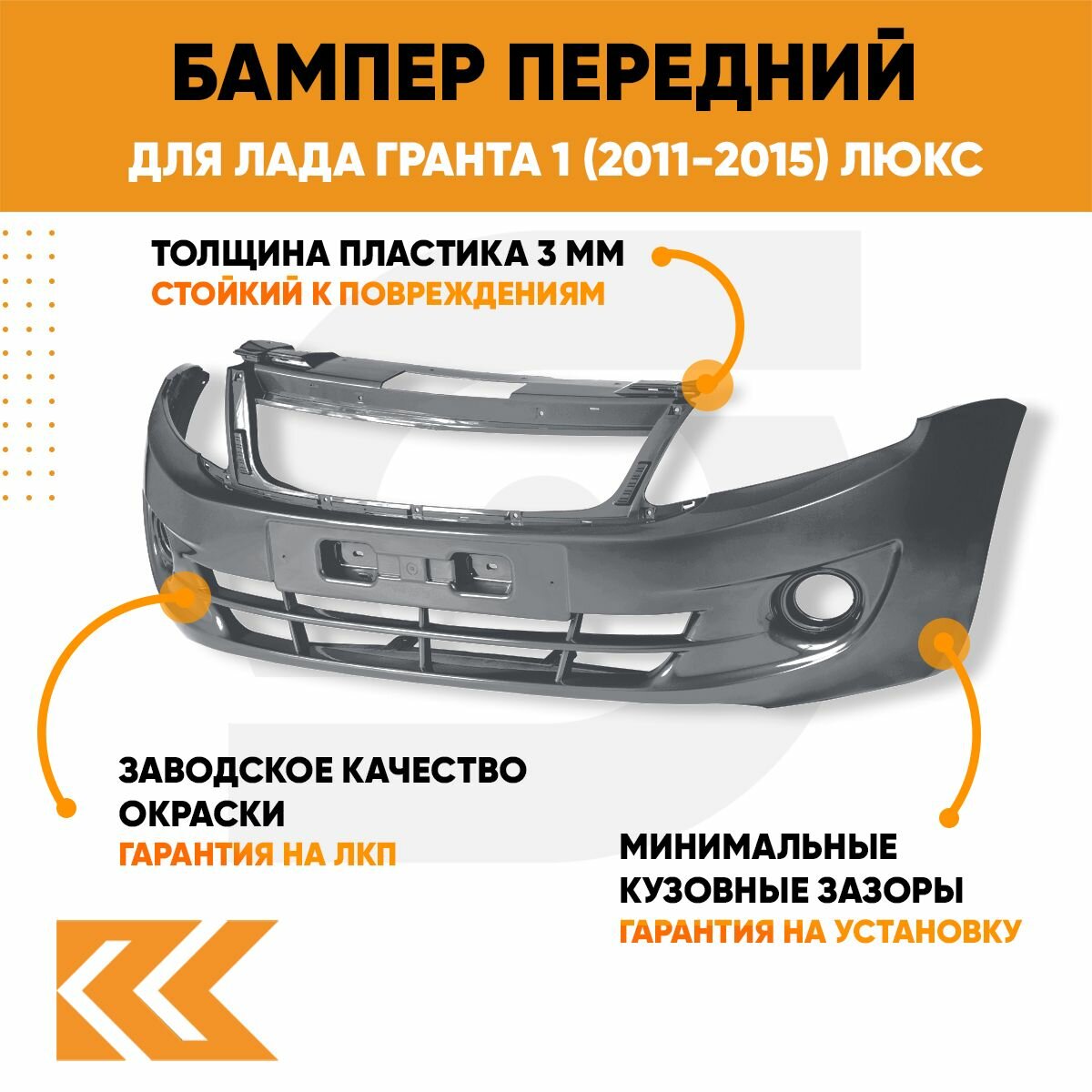 Бампер передний в цвет Лада Гранта 1 (2011-2015) люкс 111 - апельсин - Оранжевый