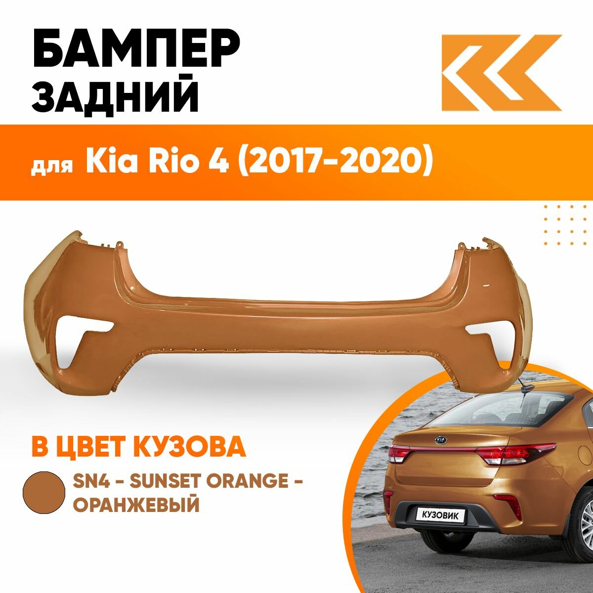 Купить Бампер задний в цвет кузова для Киа Рио 4 Kia Rio 4 (2017-2020) седан SN4 - SUNSET ORANGE - Оранжевый