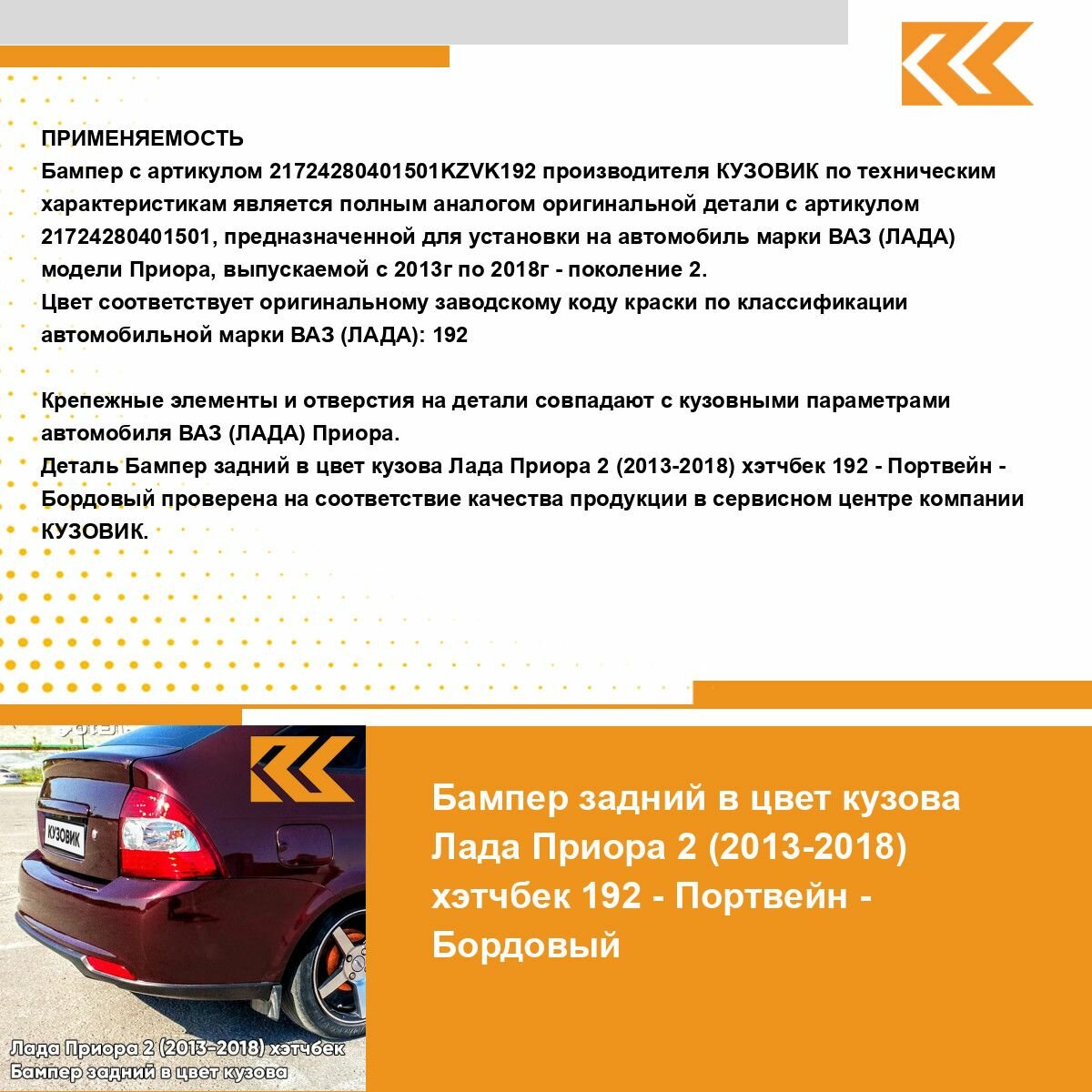 | Подробная комплектация | Бампер задний в цвет кузова для Лада Приора 2 (2013-2018) хэтчбек |