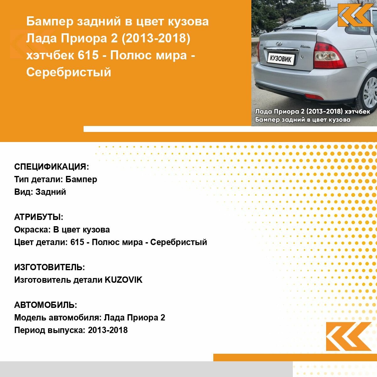 Бампер задний в цвет Лада Приора 2 (2013-2018) хэтчбек 615 - Полюс мира - Серебристый