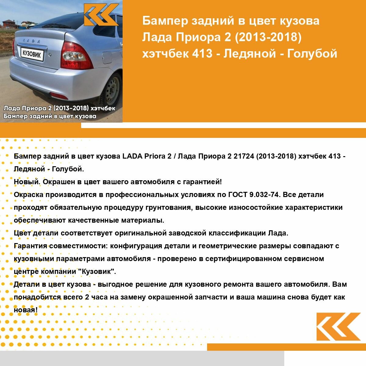 | Подробная комплектация | Бампер задний в цвет кузова для Лада Приора 2 (2013-2018) хэтчбек |