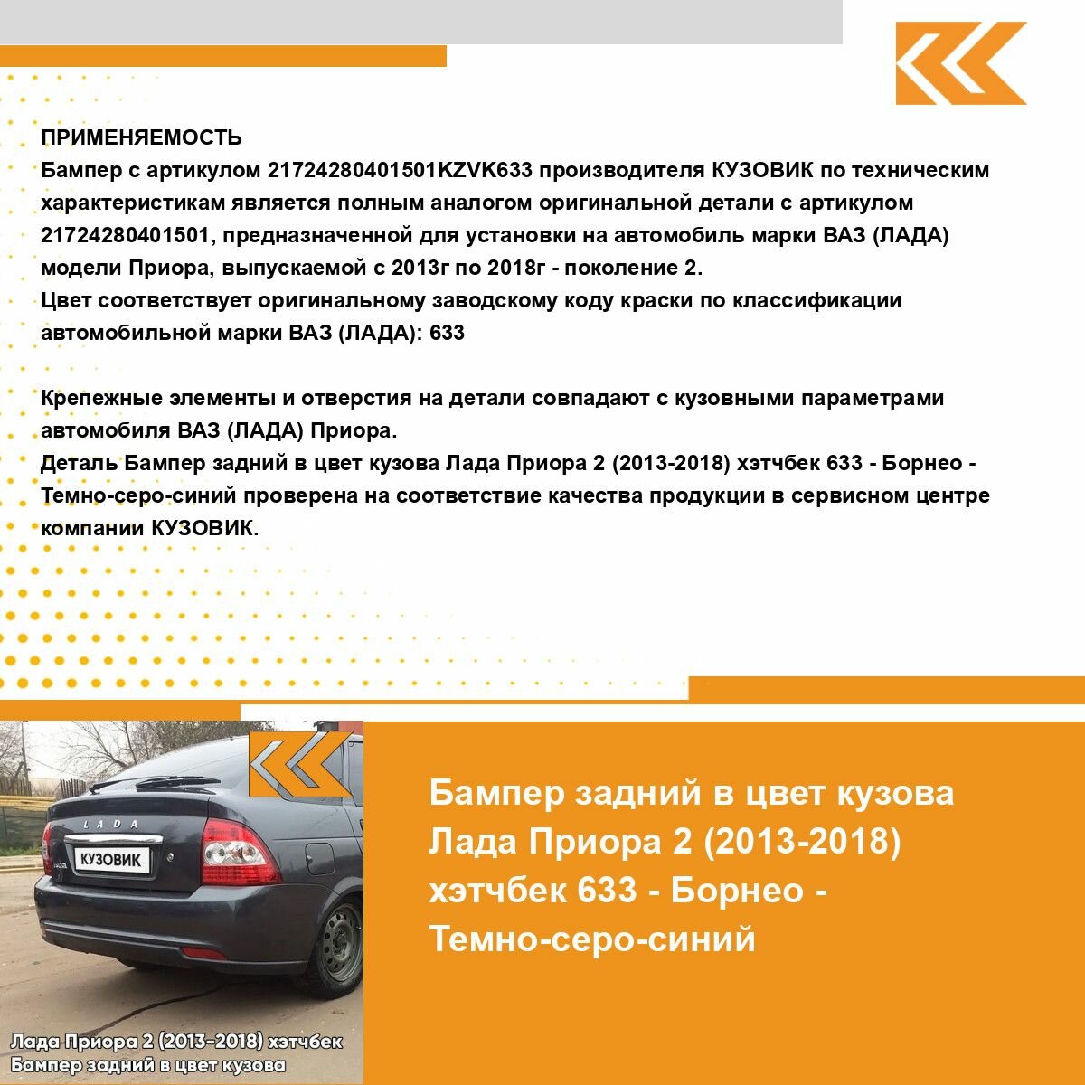 СохранитьБампер задний в цвет кузова для Лада Приора 2 (2013-2018) хэтчбек 633 - Борнео - Темно-серо-синий интересное: