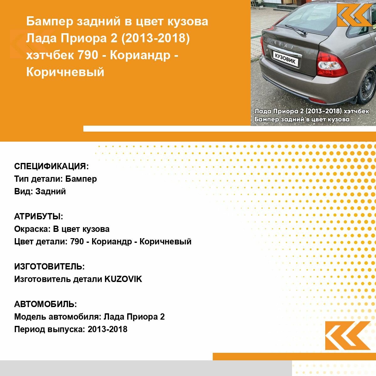 Ниже Вы можете прочитать отзывы на Бампер задний в цвет кузова для Лада Приора 2 (2013-2018) хэтчбек 790 - Кориандр - Коричневый, ознакомится с подробными характеристиками, посмотреть интересные обзоры и фотографии на Бампер задний в цвет кузова для Лада Приора 2 (2013-2018) хэтчбек 790 - Кориандр - Коричневый.