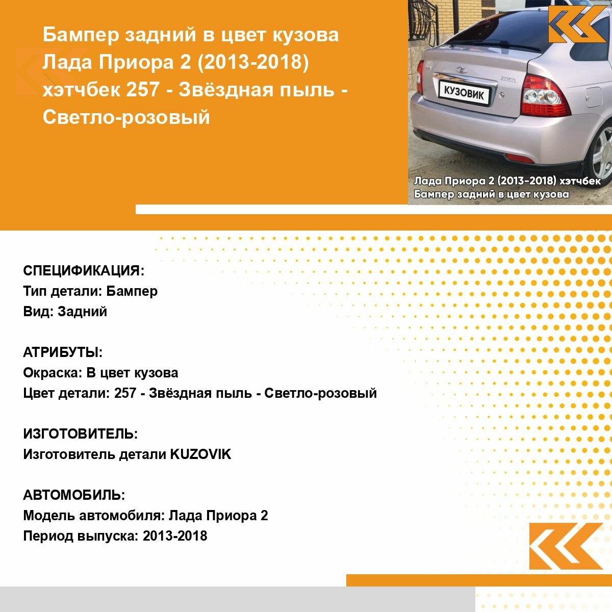 | Подробная комплектация | Бампер задний в цвет кузова для Лада Приора 2 (2013-2018) хэтчбек |