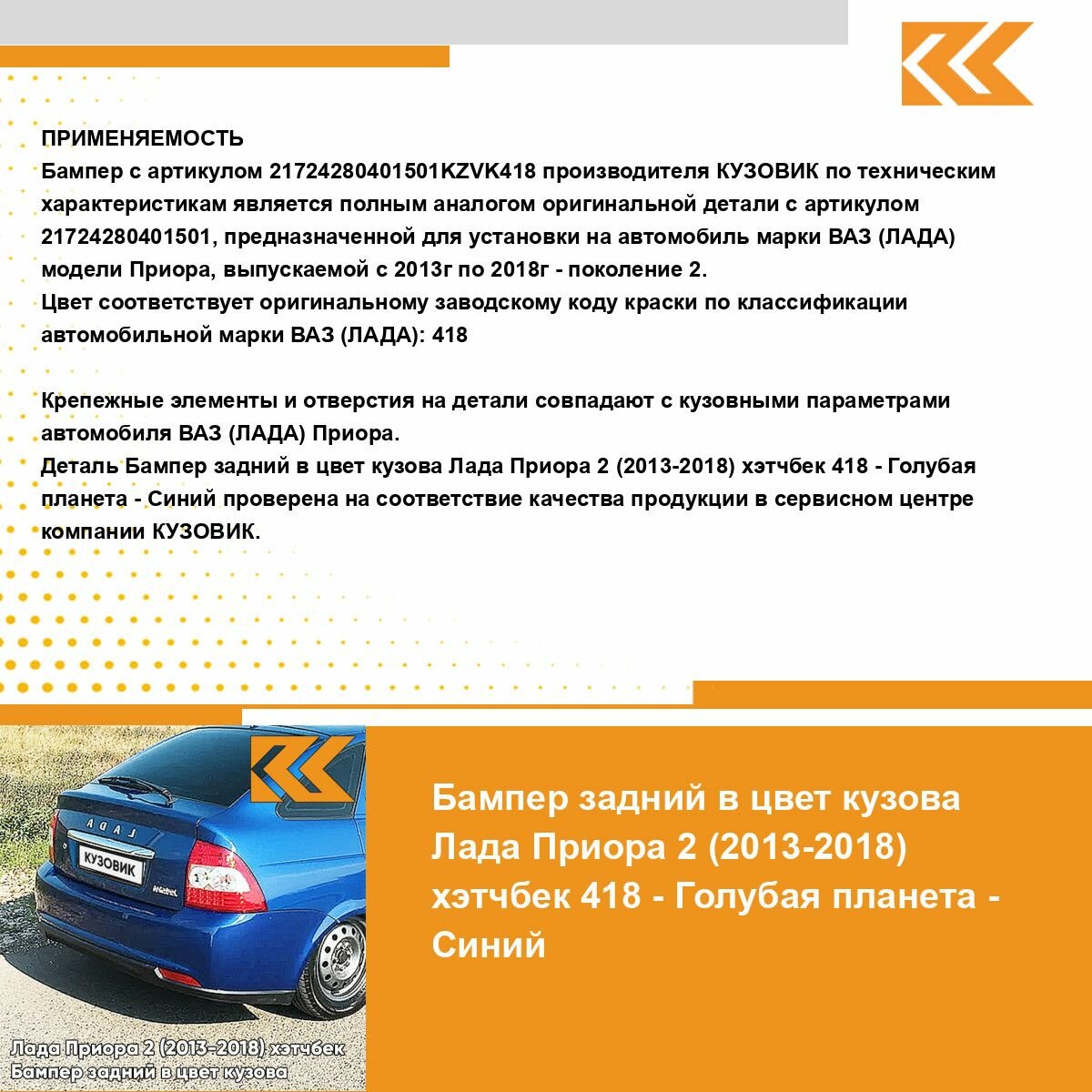 Бампер задний в цвет Лада Приора 2 (2013-2018) хэтчбек 418 - Голубая планета - Синий