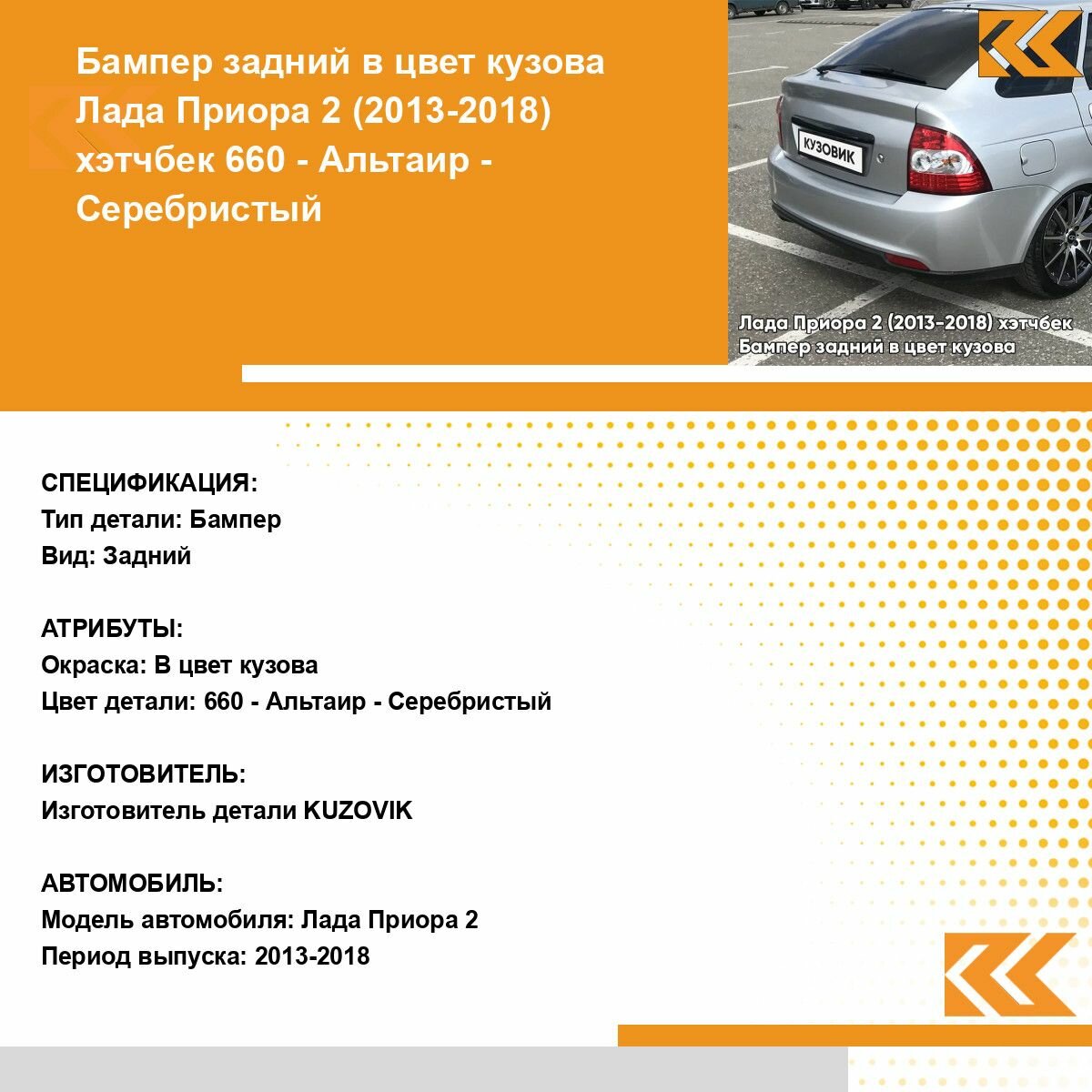 | Подробная комплектация | Бампер задний в цвет кузова для Лада Приора 2 (2013-2018) хэтчбек |