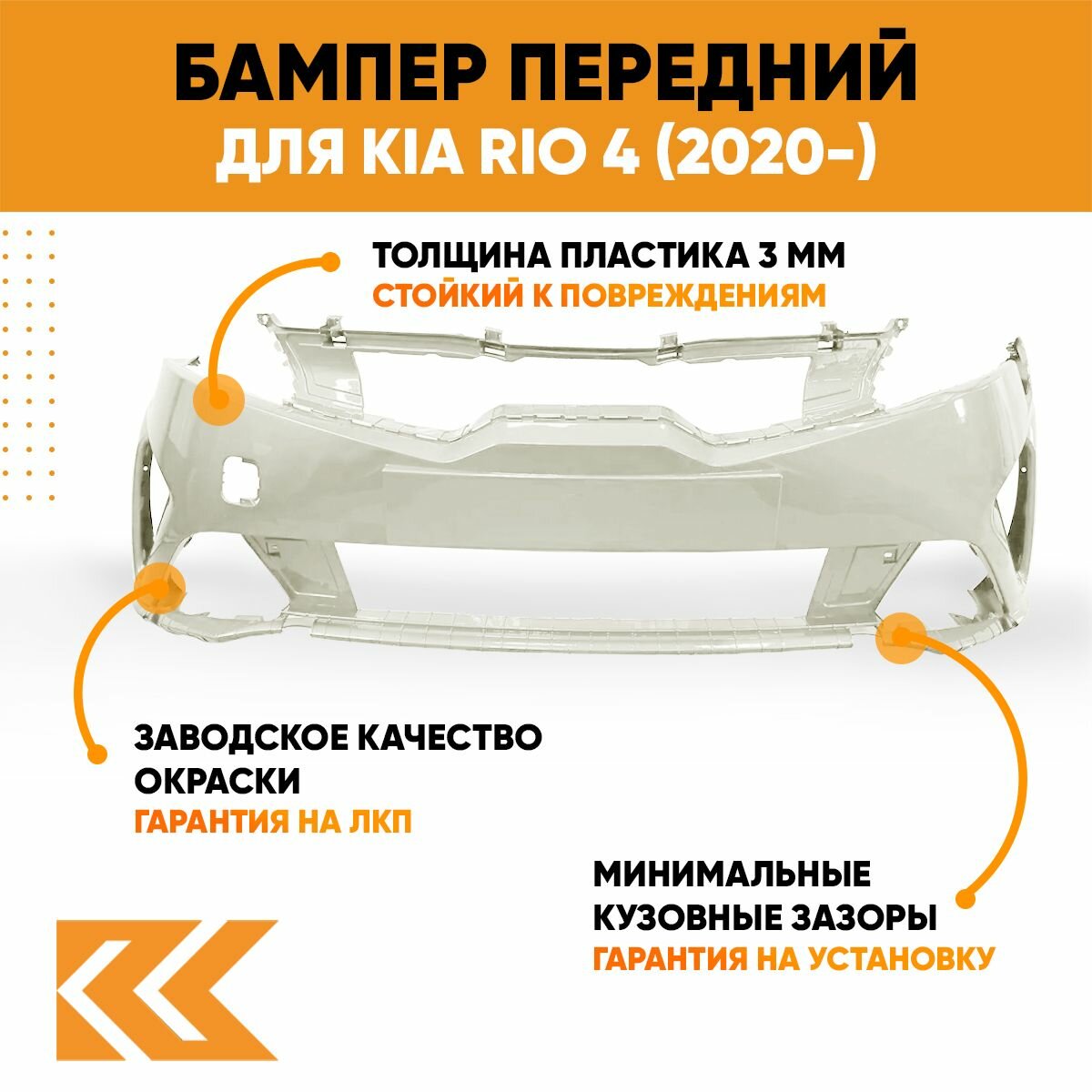 Бампер передний в цвет кузова для Киа Рио 4 Kia Rio 4 (2020-) рестайлинг SAW - ATLAS WHITE - Белый