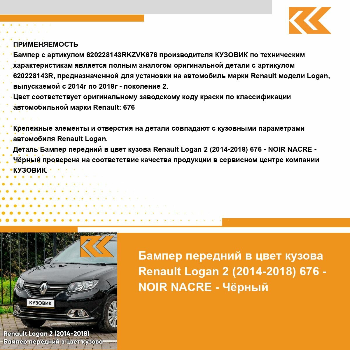 | Подробная комплектация | Бампер передний в цвет кузова для Рено Логан 2 Рено Сандеро 2 Renault Logan 2 / Renault Sandero 2 (2014-2018) |