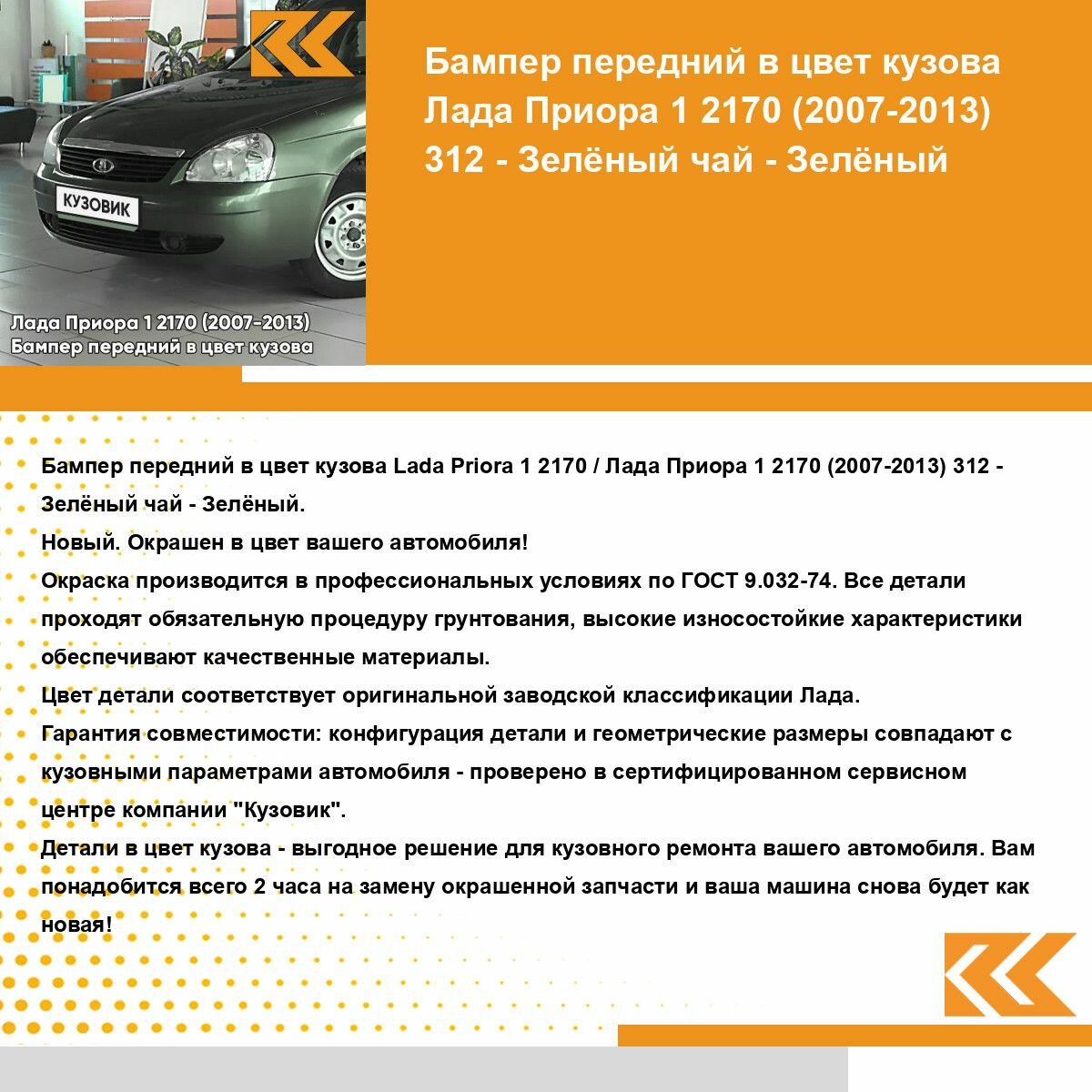 СохранитьБампер передний в цвет кузова для Лада Приора 1 2170 (2007-2013) 312 - Зеленый чай - Зеленый интересное:
