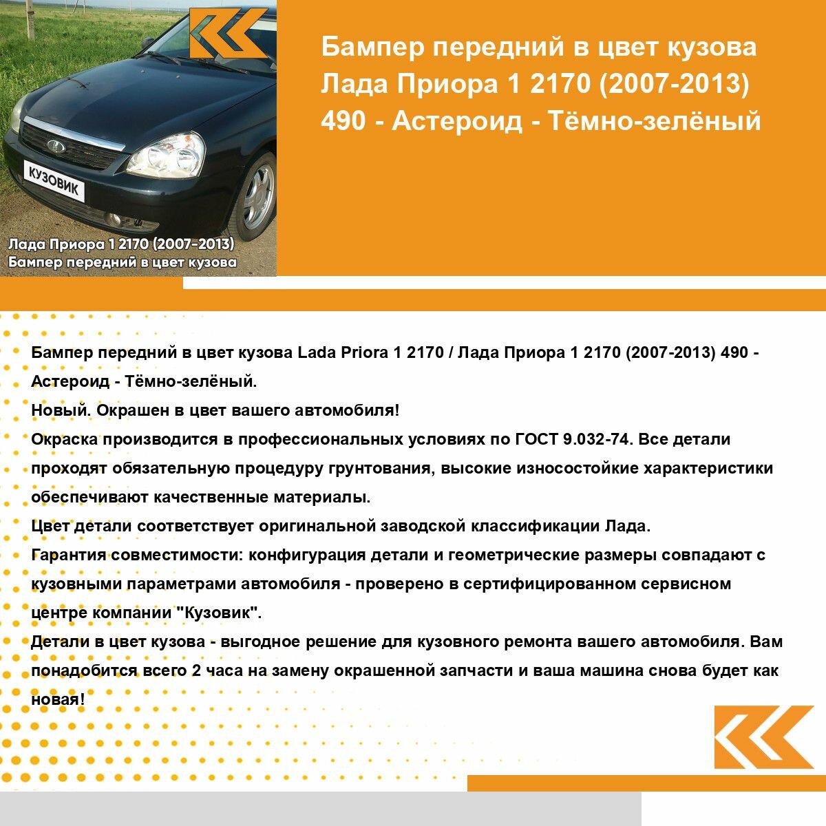 СохранитьБампер передний в цвет кузова для Лада Приора 1 2170 (2007-2013) 490 - Астероид - Темно-Зеленый интересное: