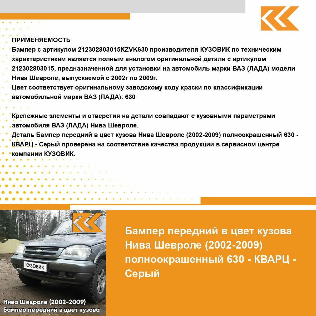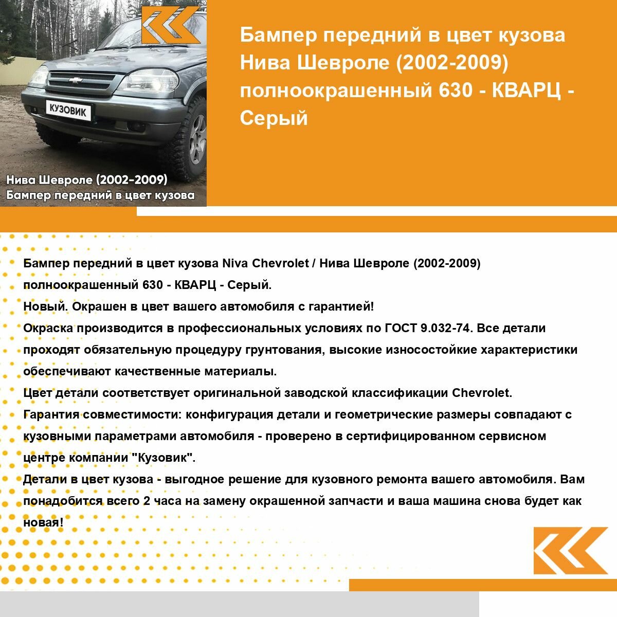 | Подробная комплектация | Бампер передний в цвет кузова для Нива Шевроле (2002-2009) полноокрашенный |