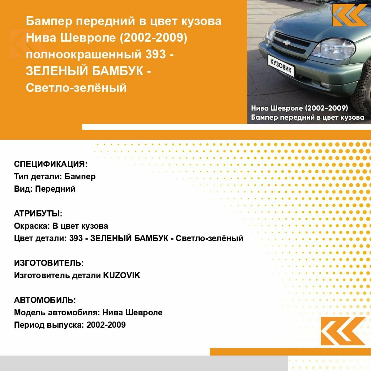 | Подробная комплектация | Бампер передний в цвет кузова для Нива Шевроле (2002-2009) полноокрашенный |