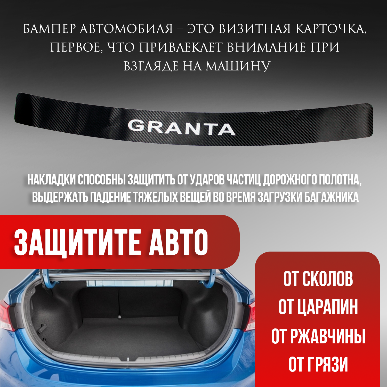 Накладка на задний бампер карбон черный Лада (ВАЗ) Гранта / Lada Granta (2011-2024) надпись Granta интересное: