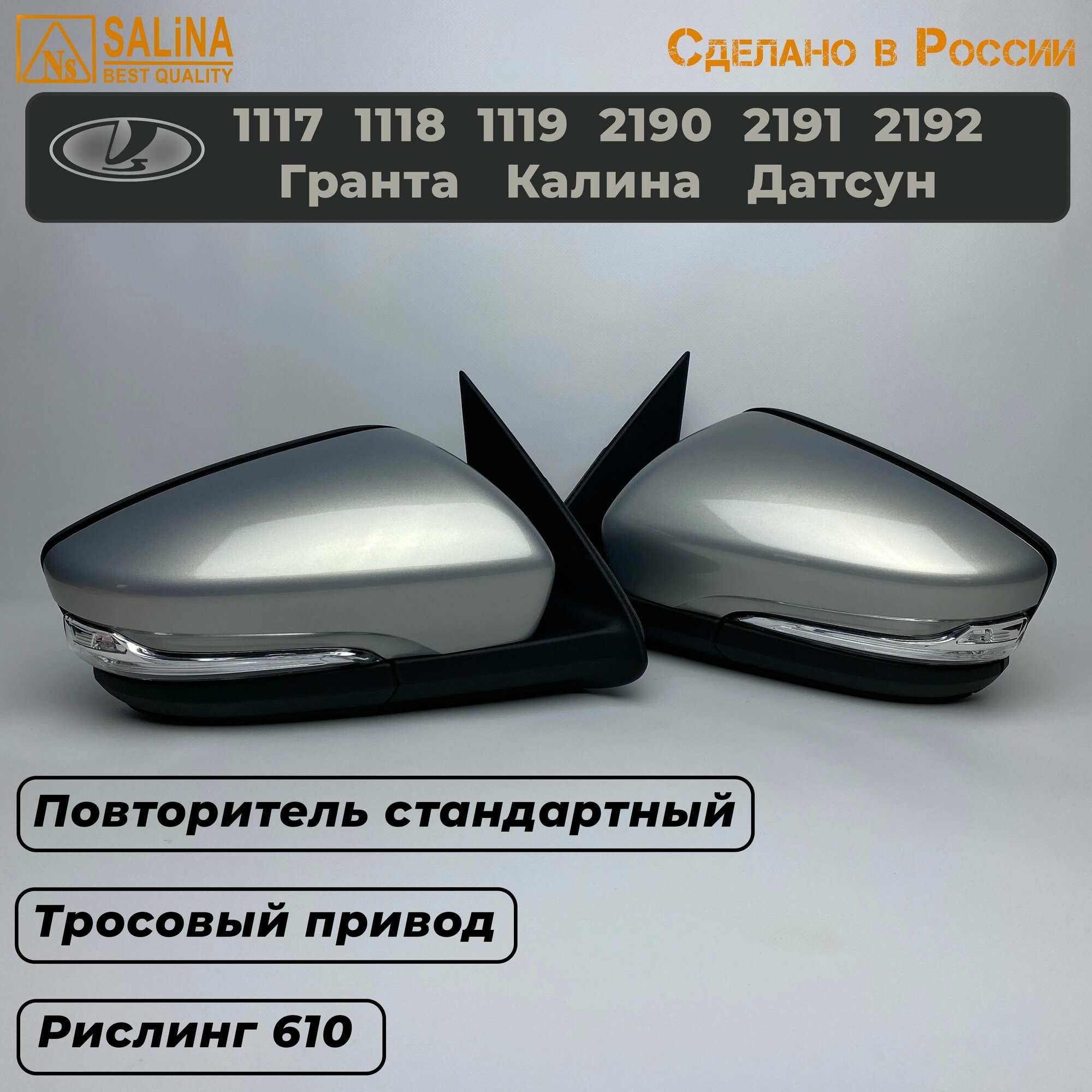 Комплект зеркал с тросовым приводом, обогревом, повторителем Стандарт на Ваз 2190,1117-1119, Гранта FL, Калина, Датсун (Рислинг 610)