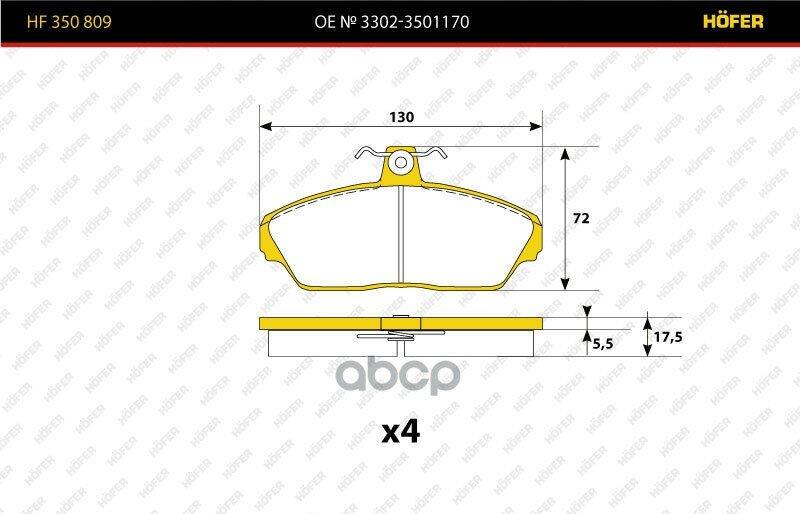 Тормозные колодки передние дисковые HOFER HF350809 для а/м ГАЗ 3302, 3110, 2410, 2705
