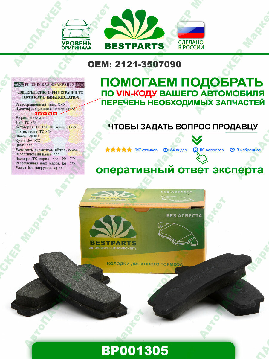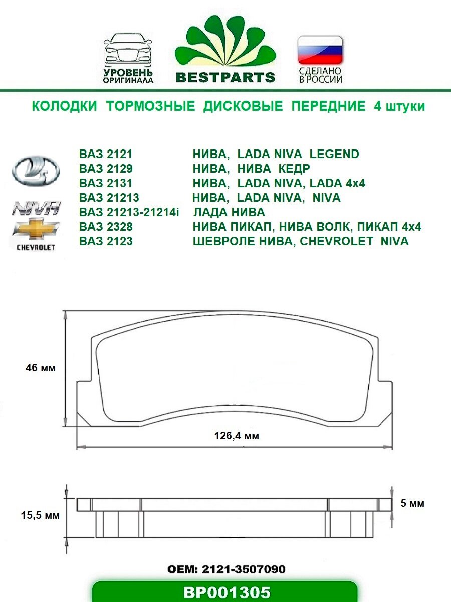 Колодки тормозные передние 2121-213 2123 Chevrolet Niva BESTPARTS BP001305 интересное:
