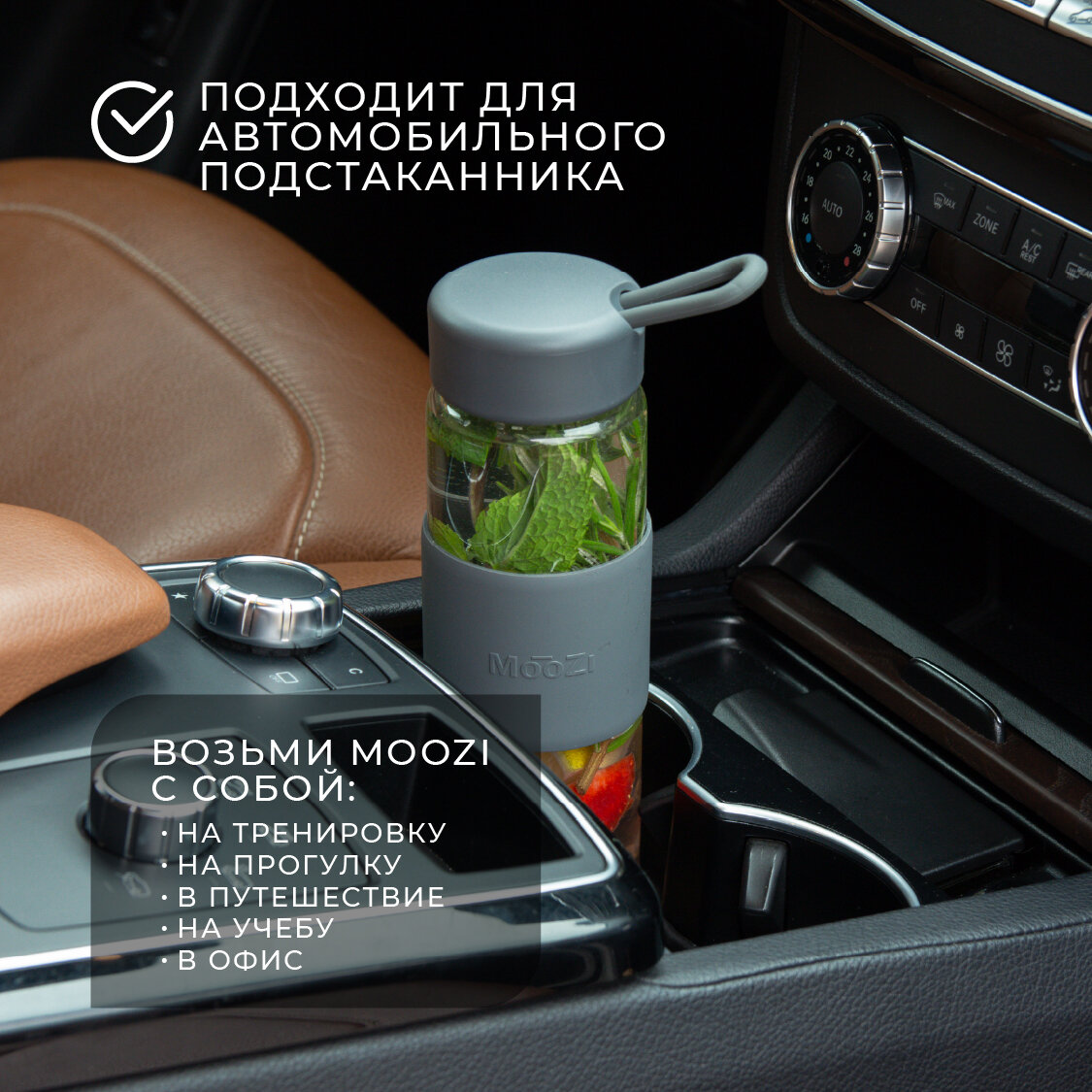 Стеклянная бутылка MOOZI, для воды, 520мл, серая, с герметичной крышкой
