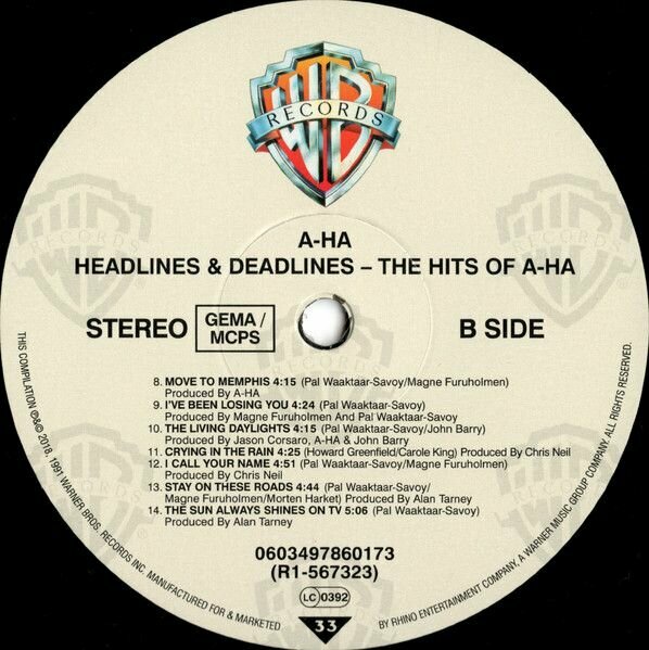 | Треклист | A1. Take On Me A2. Cry Wolf A3. Touchy! A4. You Are The One (Remix) A5. Manhattan Skyline A6. The Blood That Moves The Body A7. Hunting High And Low (Remix) B1. Move To Memphis B2. I've Been Losing You B3. The Living Daylights (Single Version) B4. Crying in the Rain B5. I Call Your Name B6. Stay On These Roads B7. The Sun Always Shines On T.V. |