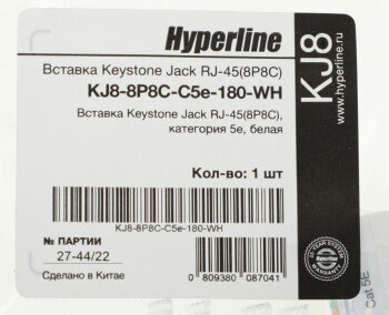 Вставка KJ8-8P8C-C5e-180-WH Keystone Jack RJ-45(8P8C)категория 5eтип 180 град | код 426192 | Hyperline (1 шт.) интересное: