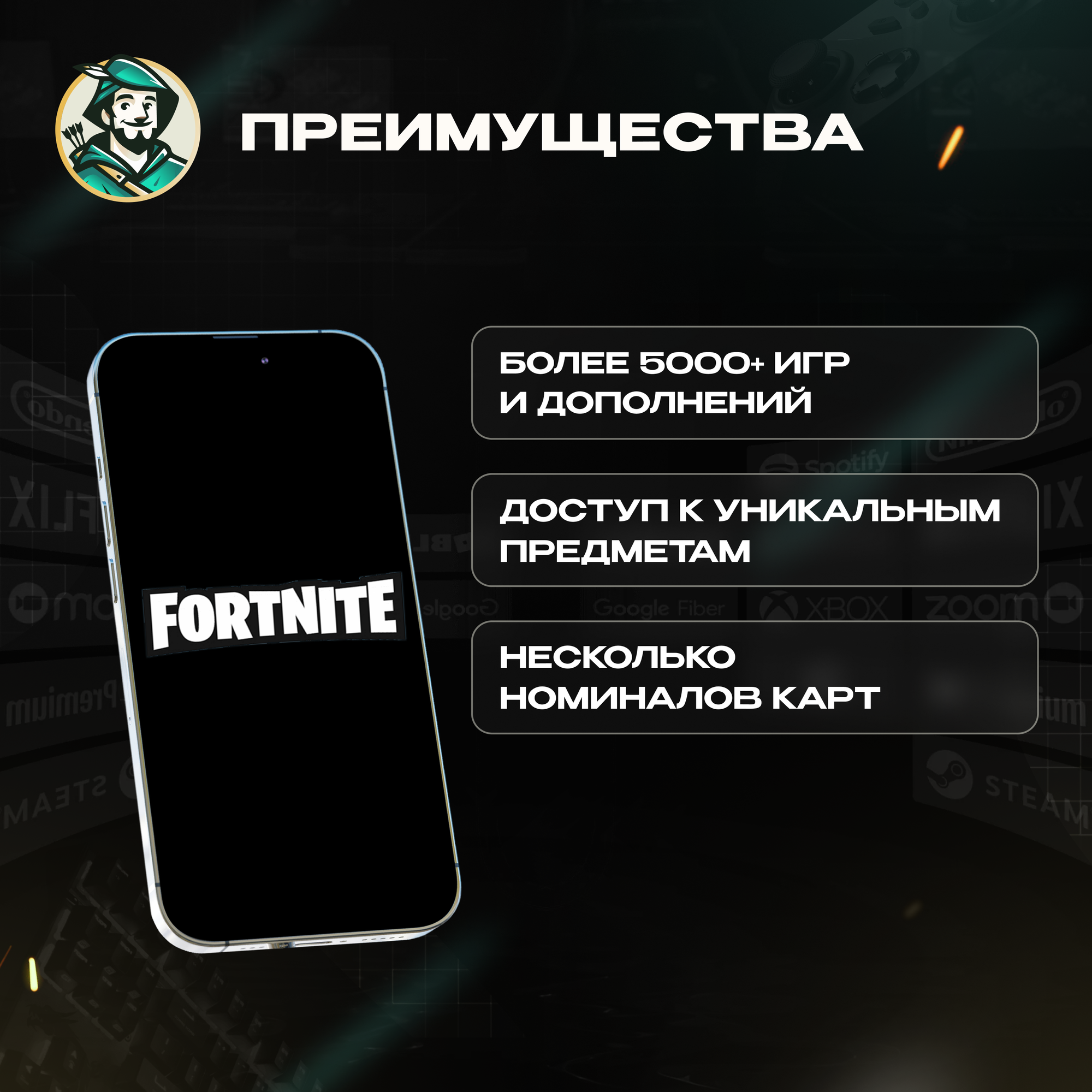 Пополнение счета Fortnite на 1000 V-Bucks / Код активации В-баксы / Подарочная карта Фортнайт / Gift Card (Россия)