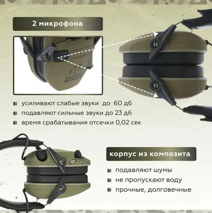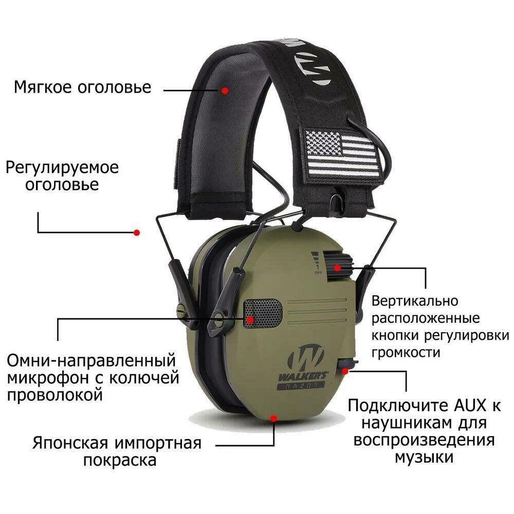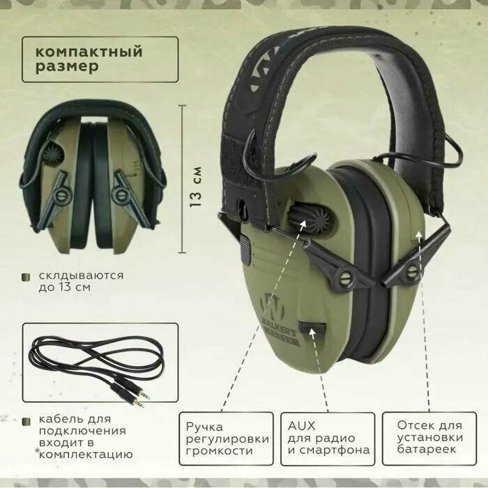 Тактические наушники с шумоподавлением Walkers Razor активные интересное: