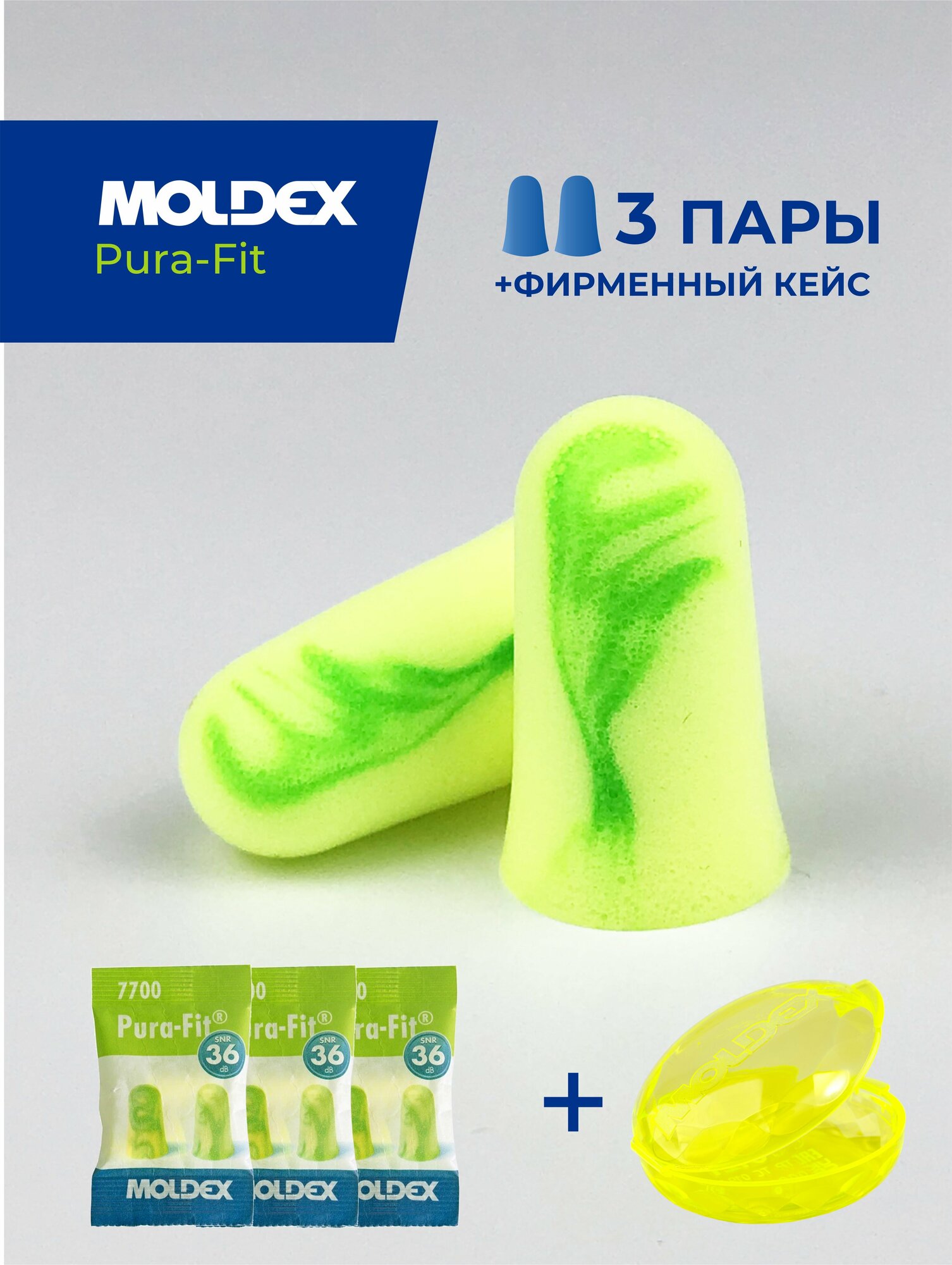 Купить Беруши для сна максимальное шумоподавление (противошумные вкладыши) Moldex Pura-Fit, 3 пары с кейсом
