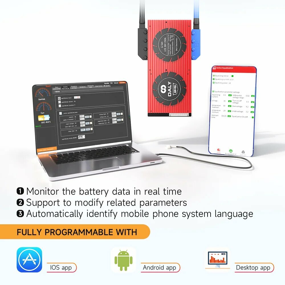 Инвертор Daly Smart BMS LiFePO4 для инвертора Energy Solar 300A 400A 500A, 40A BT, Li-ion 13S 48V BMS интересное:
