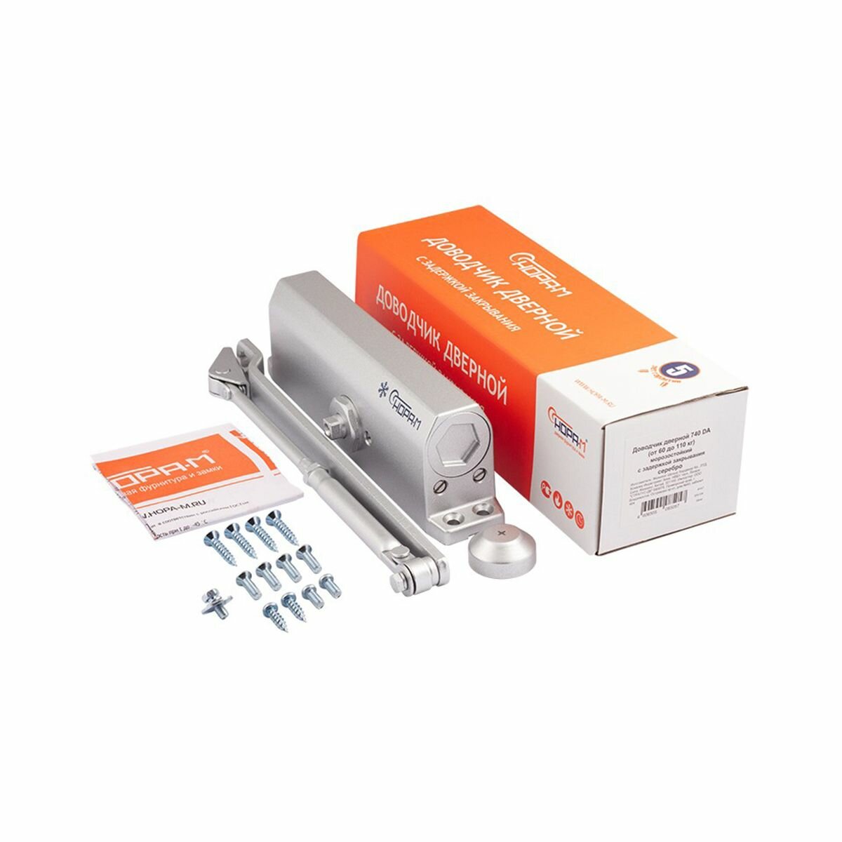 Доводчик дверной Нора-М 740 DA, для дверей 60 - 110 кг, с задержкой закрывания, серебро
