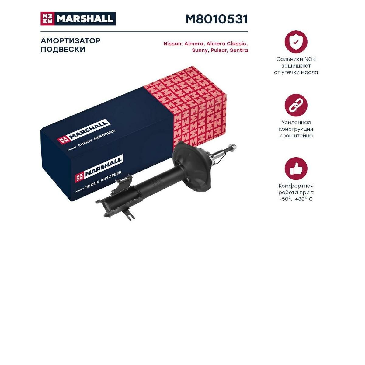 Амортизатор Nissan Almera (Classic) 06-, Almera 00-, Sunny 98- передний Marshall газовый левый интересное: