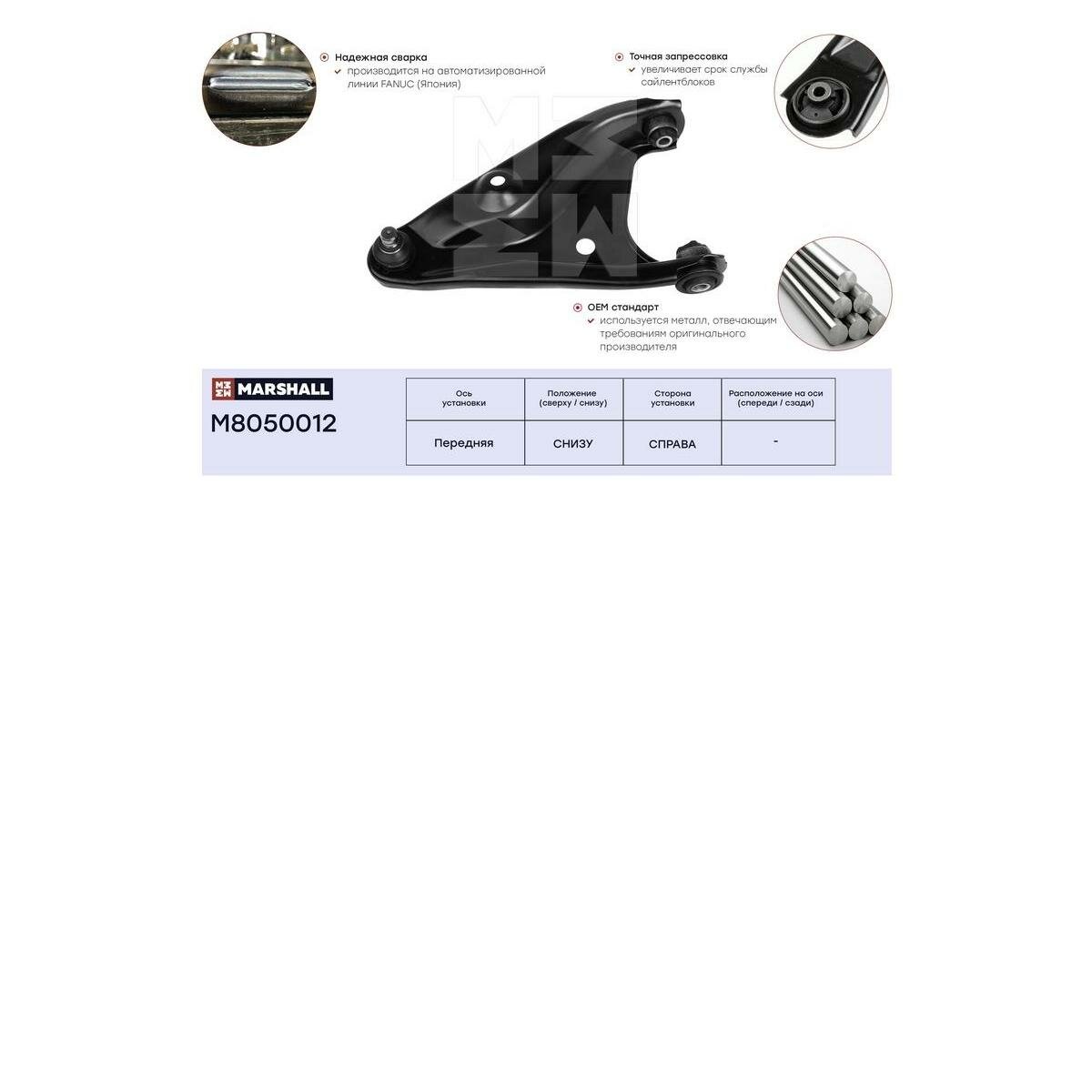 Рычаг Подвески Передн. Прав. Lada Largus 12-, Nissan Almera (G15) 12-, Renault Logan 04-, Sandero 07- () MARSHALL арт. M8050012