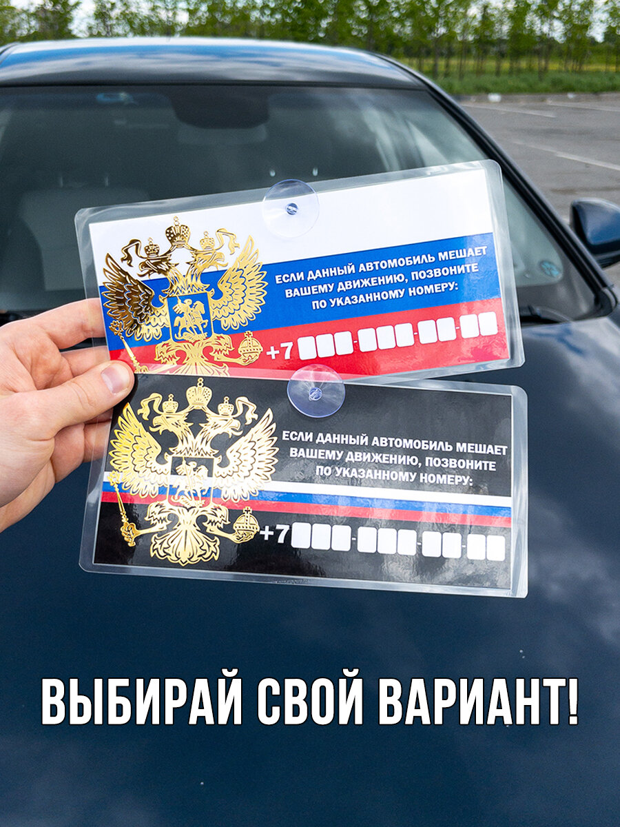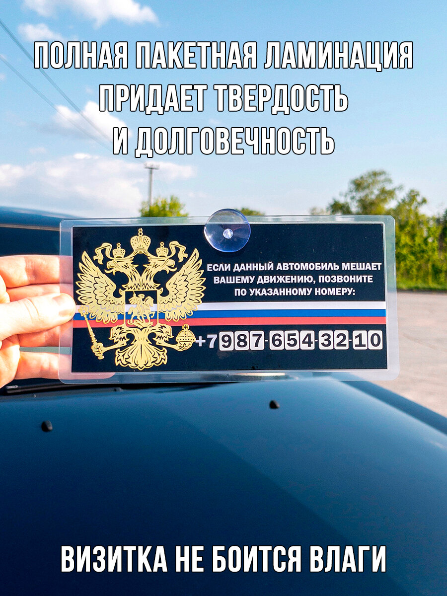 Автовизитка с номером телефона - парковочная табличка для авто с гербом РФ